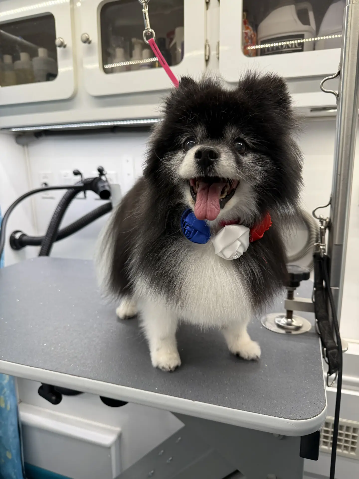 Mobile grooming is a luxury service. Mobile groomers provide all of the amenities that a salon does but on wheels. We take less clients per day and are able to provide a more intimate one on one service with each client and pet. We also like to provide all of the add-ons,
