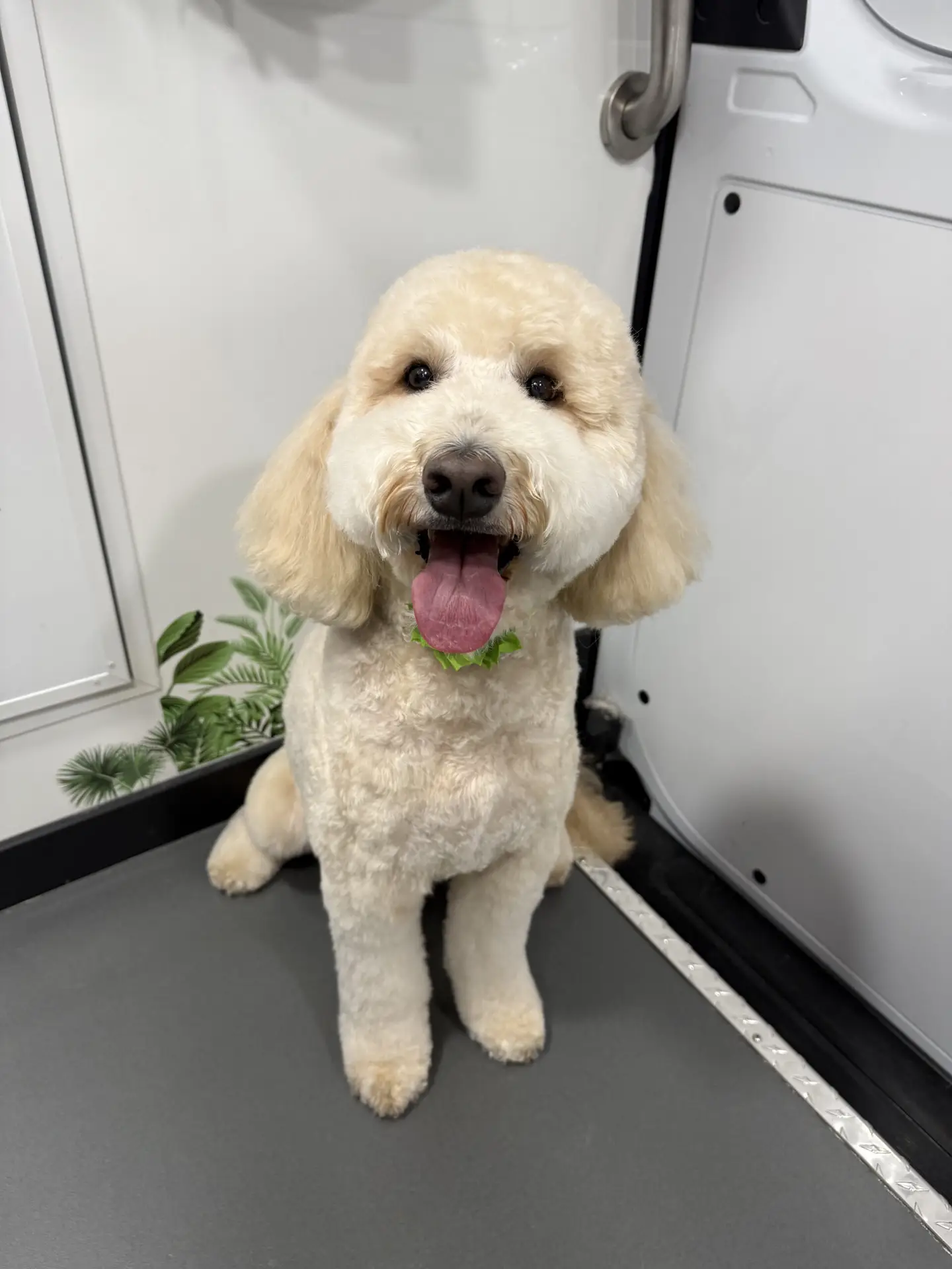 Mobile grooming is very different from a salon experience. We have a fully operational doggy salon on wheels with cool A/C in the summer and cozy heat in the winter. This luxury service is available by appointment only and due to the limited number of dogs we can style in one day, our spots fill up fast.